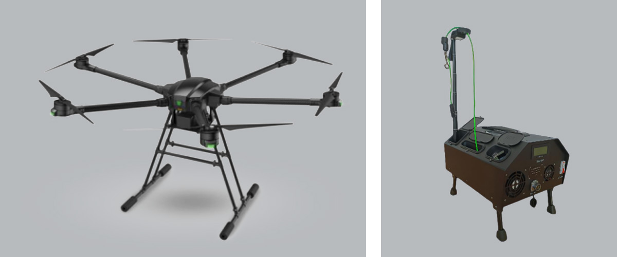 系留無人機為常見無人機續(xù)航短的弱點提供了解決方案,打破無人機續(xù)航時間的限制,為無人機長時間駐空提供能量支持。TD01系留無人機,可手動操作或遠程控制,無人機飛行平臺通過掛載不同任務(wù)載荷實現(xiàn)不同的應(yīng)用場景,可隨人、車、船等一切可移動設(shè)備轉(zhuǎn)移地點目標,主要用于應(yīng)急照明、視頻監(jiān)控、信號發(fā)射、電視直播和單兵偵察等。