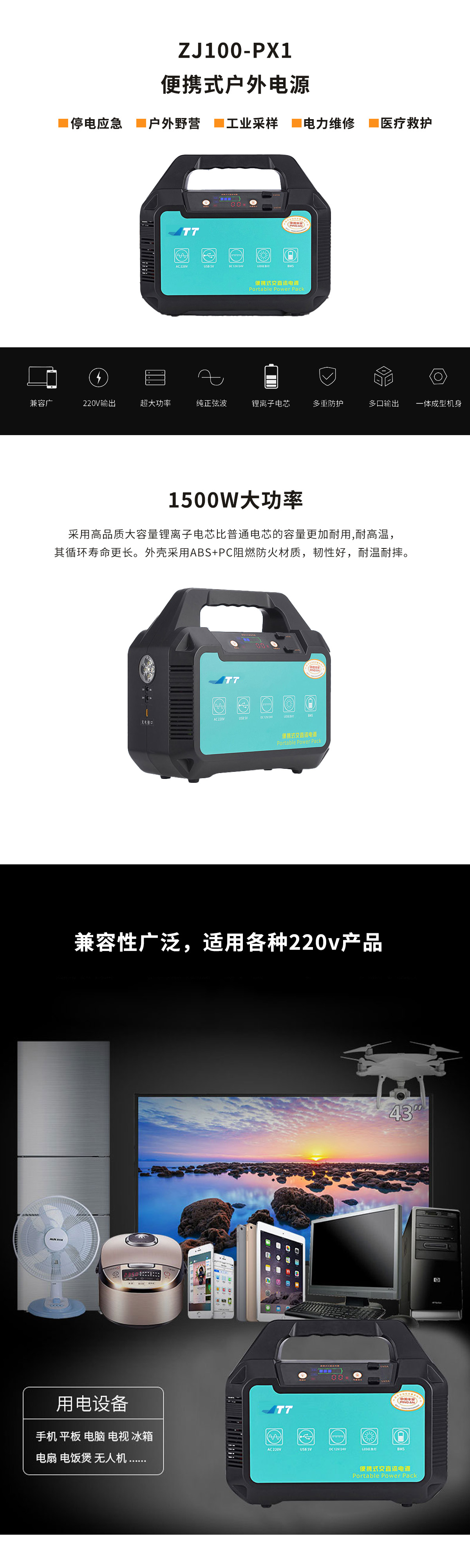1.電池類型:鋰電池;電池容量1000WH,充電時長10h;